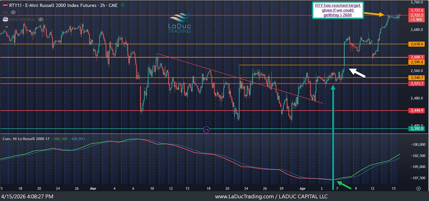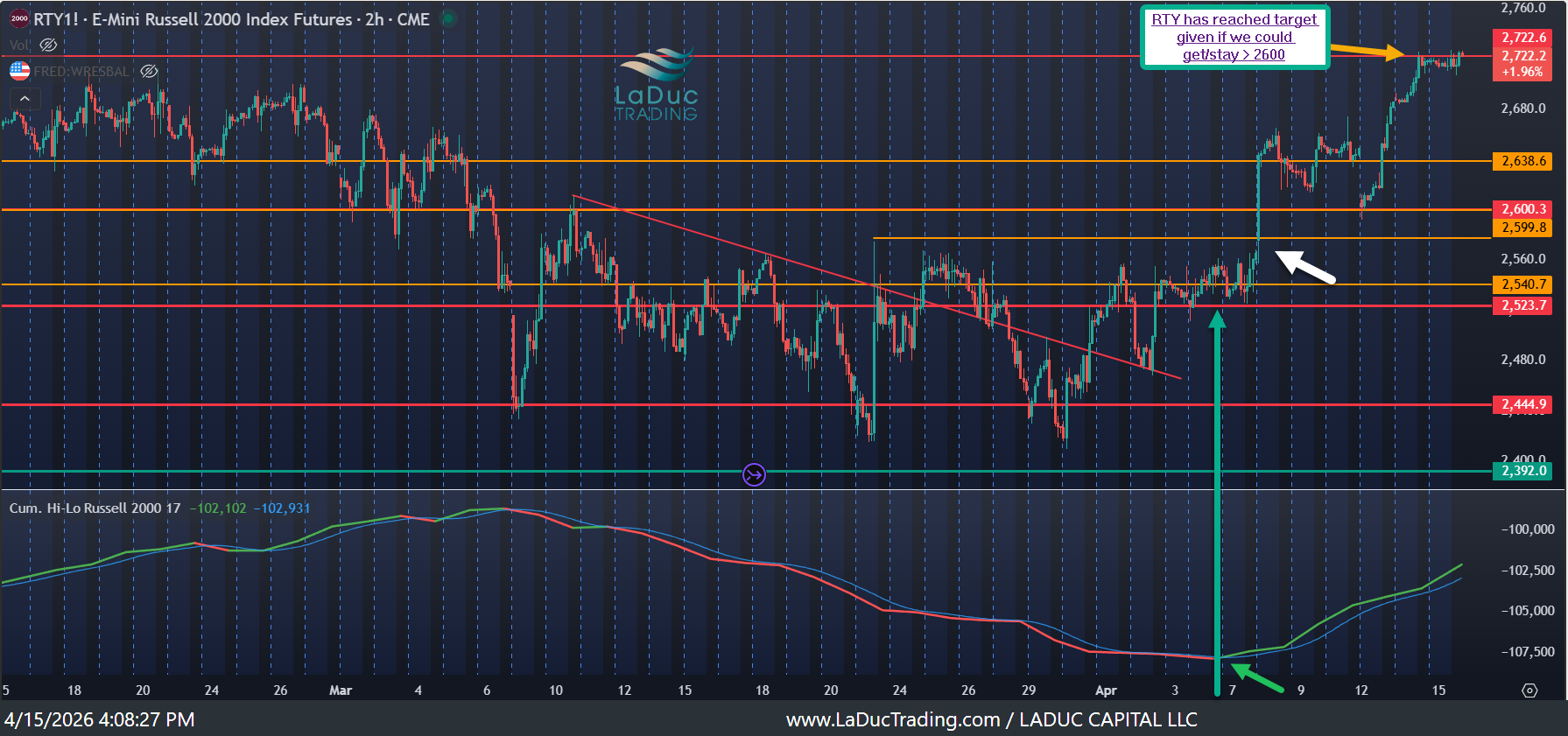 RTY has reached the price target I gave of 2722 once above 2600.