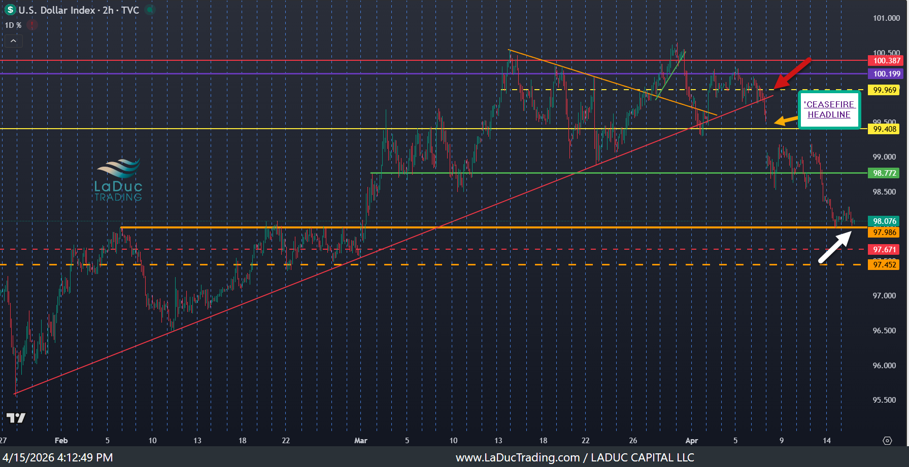 USD sitting on 98 support AFTER I gave that level as breakdown support if markets were to move higher. While 10Y yield stuck the landing at 4.3% and WTIC pinned $91.