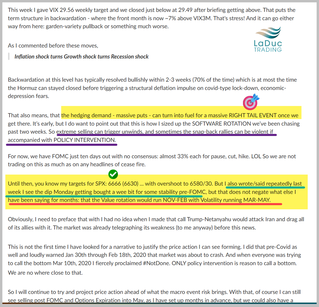 See screenshot from my weekend post highlighting “SPX: $6666 (6630” target that could fuel “RIGHT TAIL EVENT”. Both happened.