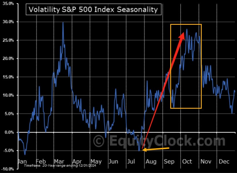 Also, don’t be complacent. We are approaching the seasonally low point for VIX.