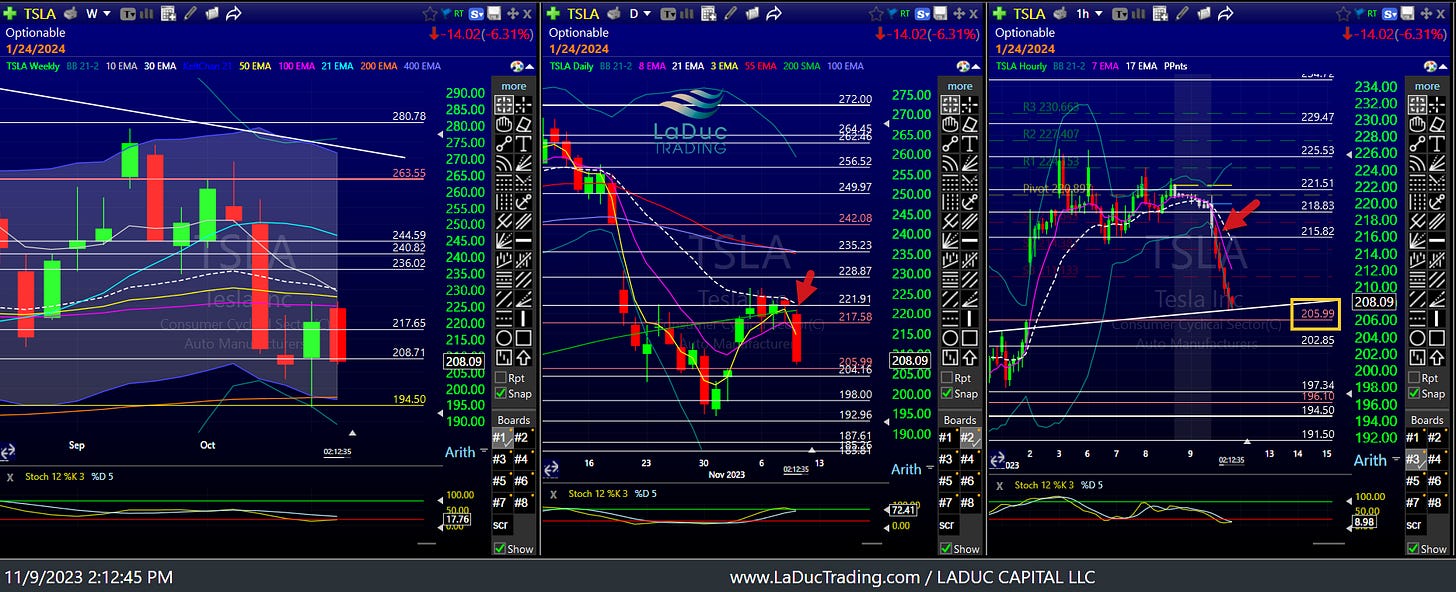 Needless to say, I was high-conviction short focused, starting with TSLA near the open with a high-conviction trigger short of $215.82 on hrly into gap fill below near $206.