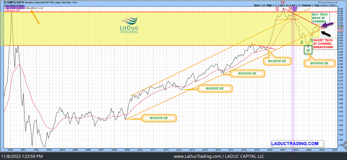 My bet: we don't get that. I'm not sure what we get, or who we get, but other than a strong 1999 breakout above this key channel trendline, we are at bigger risk of selling off - at least until the next round of "Massive QE" backstops stocks and bonds.