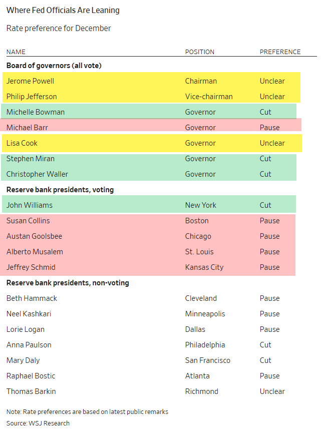 December rate cut odds may be 90%, but that doesn’t mean the Fed will agree. In fact, FOMC members are not in consensus which is a problem for bulls next week if they don’t cut. Japan also has a Fed problem if they don’t cut.