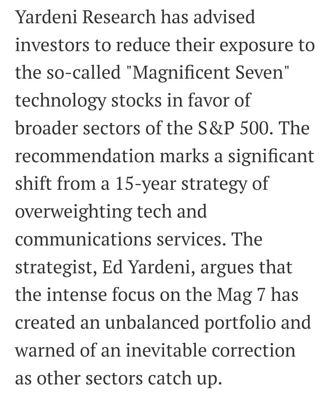 Yardeni underweights Concentration Risk - yeah, I know; it’s not really macro, but it is news that after 15 years as a perma-bull, Ed Yardeni says MAG7 is facing an “inevitable correction”.