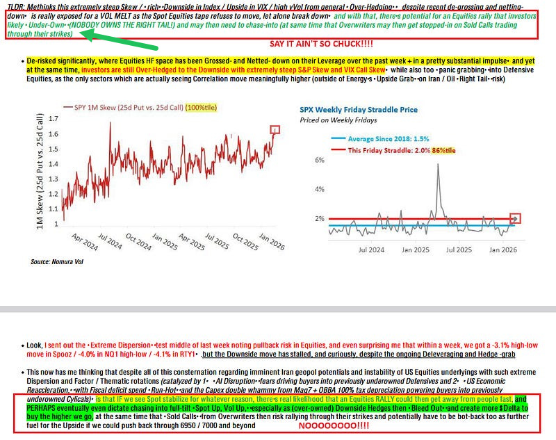 Of course, if Iran escalation is pulled forward, then downside hedges pay. But if risk-off is closer to March OpEx, then these near-duration downside hedges will bleed and that can force a rally. It’s mechanical, but your short-duration puts won’t care.