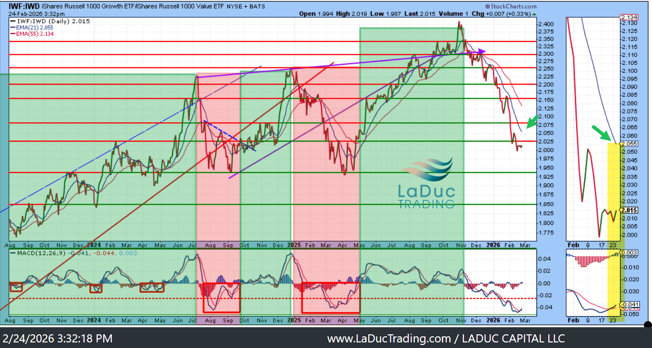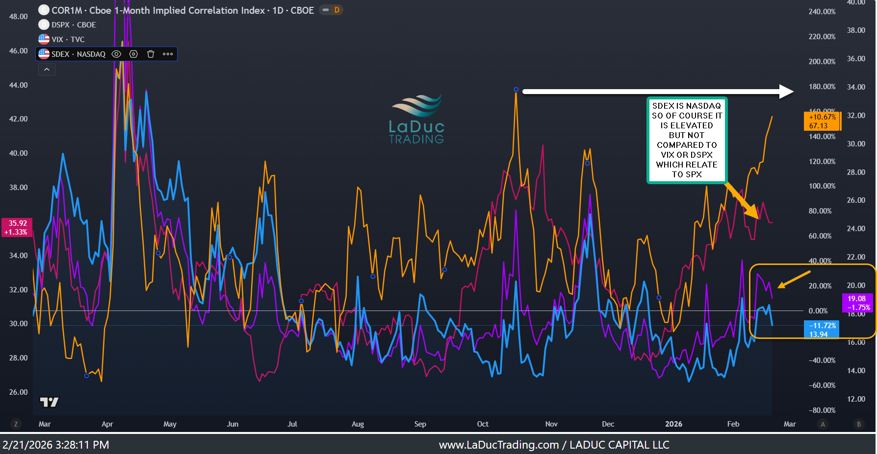 Case in point: TRI which is Thomson Reuters, profiled weeks ago as part of the AI disruption tech short ecosystem. Today it bounced perfectly on monthly support at $82.51 with a 12% gain. That’s not new-found investors as much as puts monetizing. And I think we will see a bit more of that in the next few days/weeks ahead of real risk-off events.