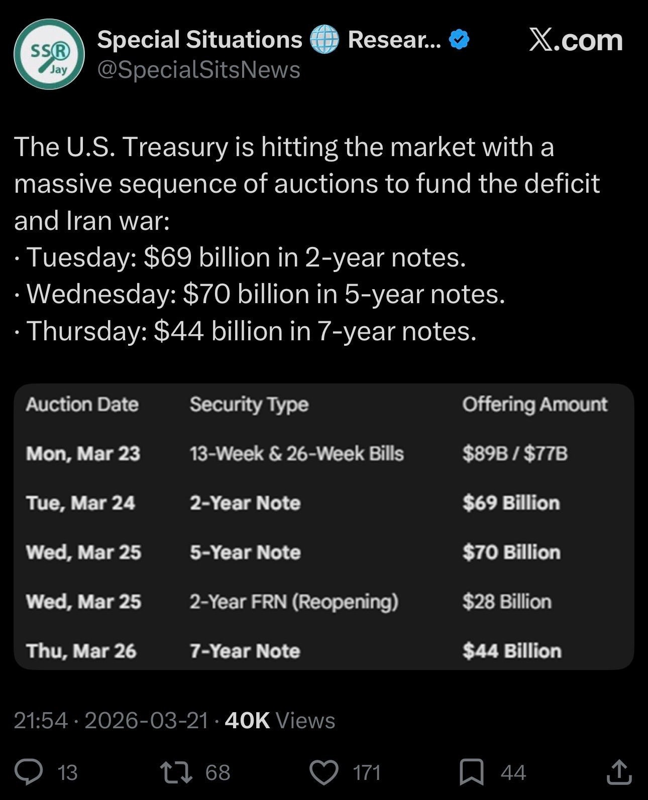 We need to get through the treasury auctions this week as discussed, so the invisible hand will work to keep equities in a ‘cone of stability’ potentially until next week.