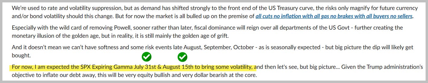 Then I warned of August turbulence - even before the large job growth revisions that shocked markets July 3st, and two days before warning of volatility into both JULY 31st and post August OpEx the 15th into VIX expiry Wednesday the 20th.