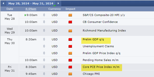 Friday's Personal Income, Personal Spending and PCE - Fed's favorite inflation measure. Expectations for the PCE are a 0.2% increase on core, down from 0.3% in the previous month.