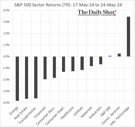 In fact, the rest of the market is really lagging. Here is last week’s performance by sector - via TheDailyShot