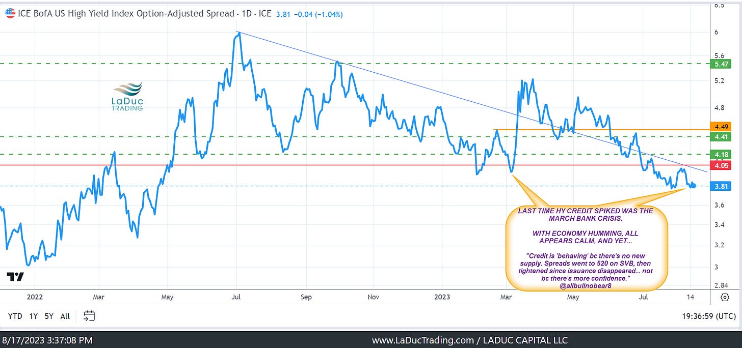 The only thing that hasn't triggered to confirm a true panic: credit spreads. See chart...