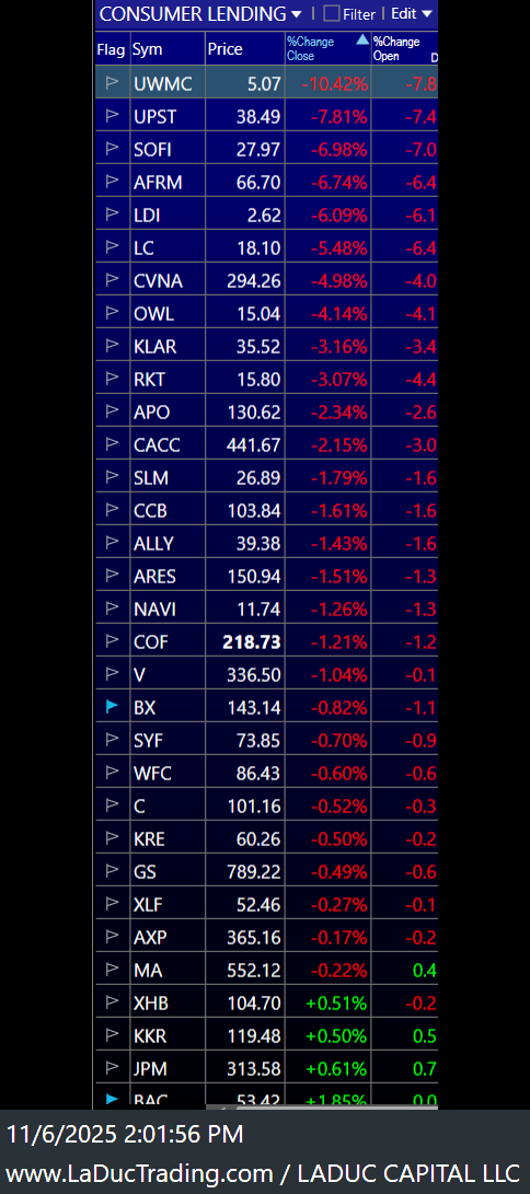 CONSUMER LENDING SECTOR IS IN TROUBLE stocks were down strongly mid-day - but keep in mind this report was published end of Sept, so these are very, very successful swing shorts across the board!