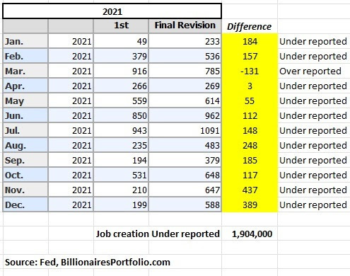 In 2021, when the Fed said “inflation is transitory” as justification for continuing with their ultra-loose, zero-bound rate regime on top of QE, Biden was able to push through his Build Back Better bill - which fueled inflation even more! All the while, BLS was UNDER-reporting job growth by 1.9 million for 2021. Is it any wonder, CPI hit 9.1% middle of 2022?!