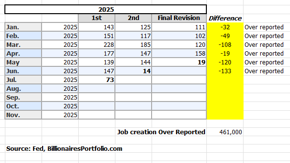 Here’s how it breaks down: 2025 Revisions YTD were 461K OVER-Reported…