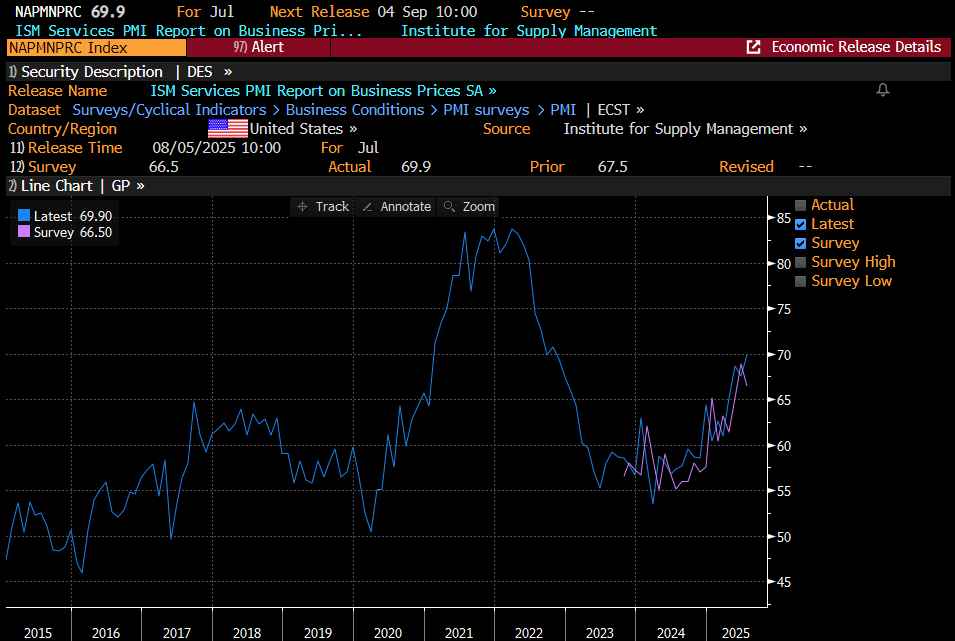ISM Prices Paid are also a concern - rising into near 70 on the latest print today - which makes it difficult not only for consumers but also for a Fed thinking about cutting rates that could further fuel higher prices.