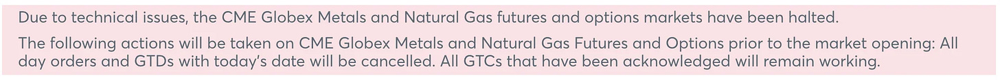 The last time the CME Globex Metals markets experienced a ‘glitch’ and halted was right before the last parabola in silver. In the meantime, Comex has also locked traders out of their ability to manage positions. No beuno!!