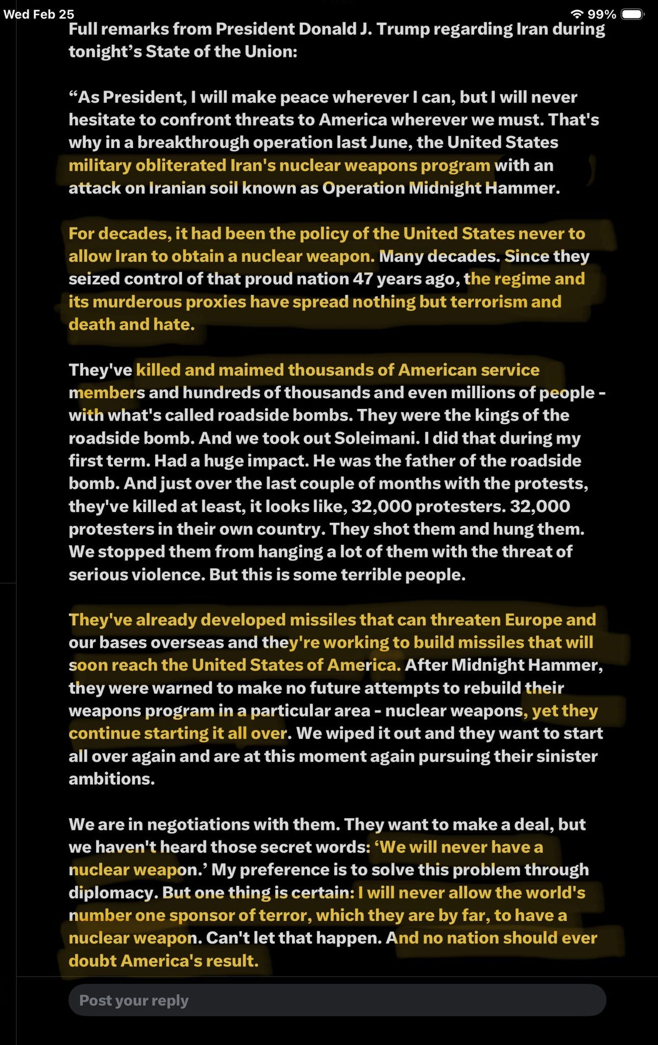 Also troubling: Trump showed no signs in his speech on Iran about softening his tone. That’s a set up for escalation while gaslighting Americans that he is doing the world a favor. It’s a very dangerous and unpopular play outside Israel First supporters.