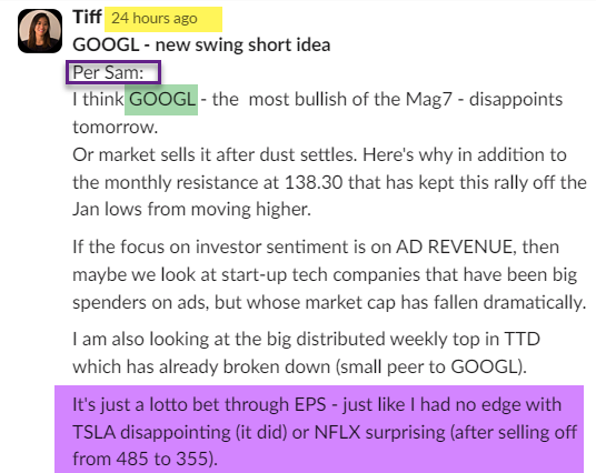 What also worked was the GOOGL short rec'd yday as "earnings lotto" in #swing-ideas as I think it will continue lower.