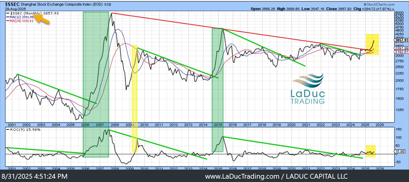Weekly/monthly structure very strong; momentum lighter than prior cycles, but trend turning up; better beta often in HK names even as SSE rises.