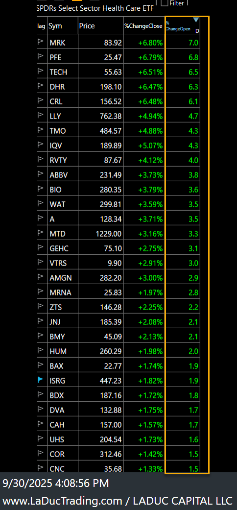 Another sector rotation of size - that Dr. Alex alerted to just before I closed my trading room - was the healthcare / pharma companies getting relief on Trump press conference statements: