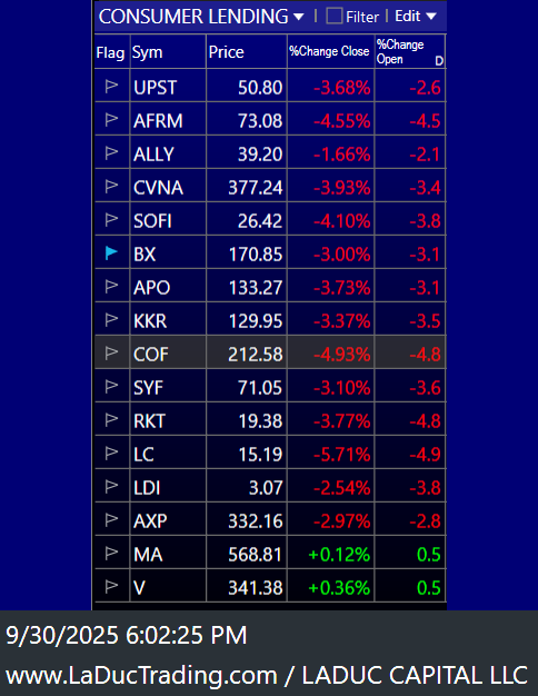 Then last week, Auto lending, consumer credit, and Asset Backed Securities hit the skids on Tricolor & First Brand company bankruptcies. Today, there was a sea of continued red which made for great chasing short - with SOFI dropping $2 on cue & CVNA $20 (and just starting).