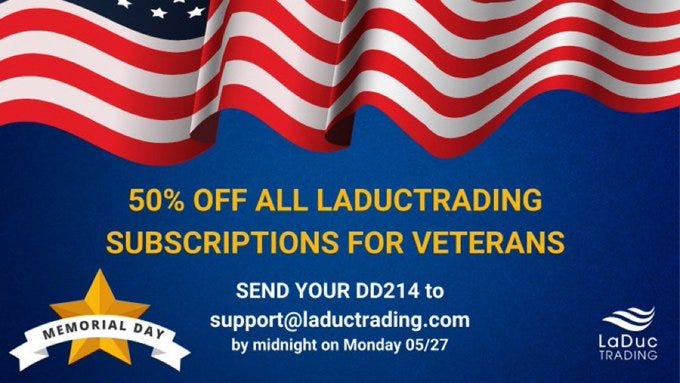 If it helps, get 50% off all LaDucTrading.com subscriptions - Just email your DD214 to support@laductrading.com by midnight ET tomorrow to request your discount code.