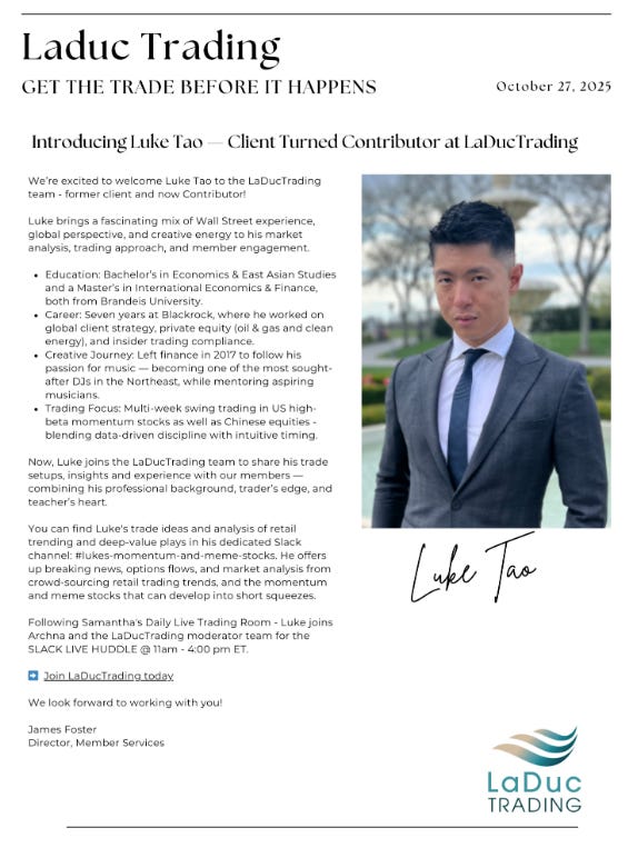 Just a reminder: You can join CHASE to view Samantha’s DAILY live trading room on Zoom livestreams from 9:15–10:45 am ET, with a recording made available after the session. PRO Substack members get access to Samantha’s daily recording of her live trading room and write-ups, but for the full-engagement experience, including The Huddle Team, consider joining us live!