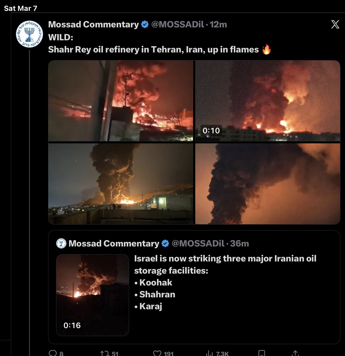 This weekend, US-Israel bombed Iran’s oil depots: Koohak, Shahran and Karaj.