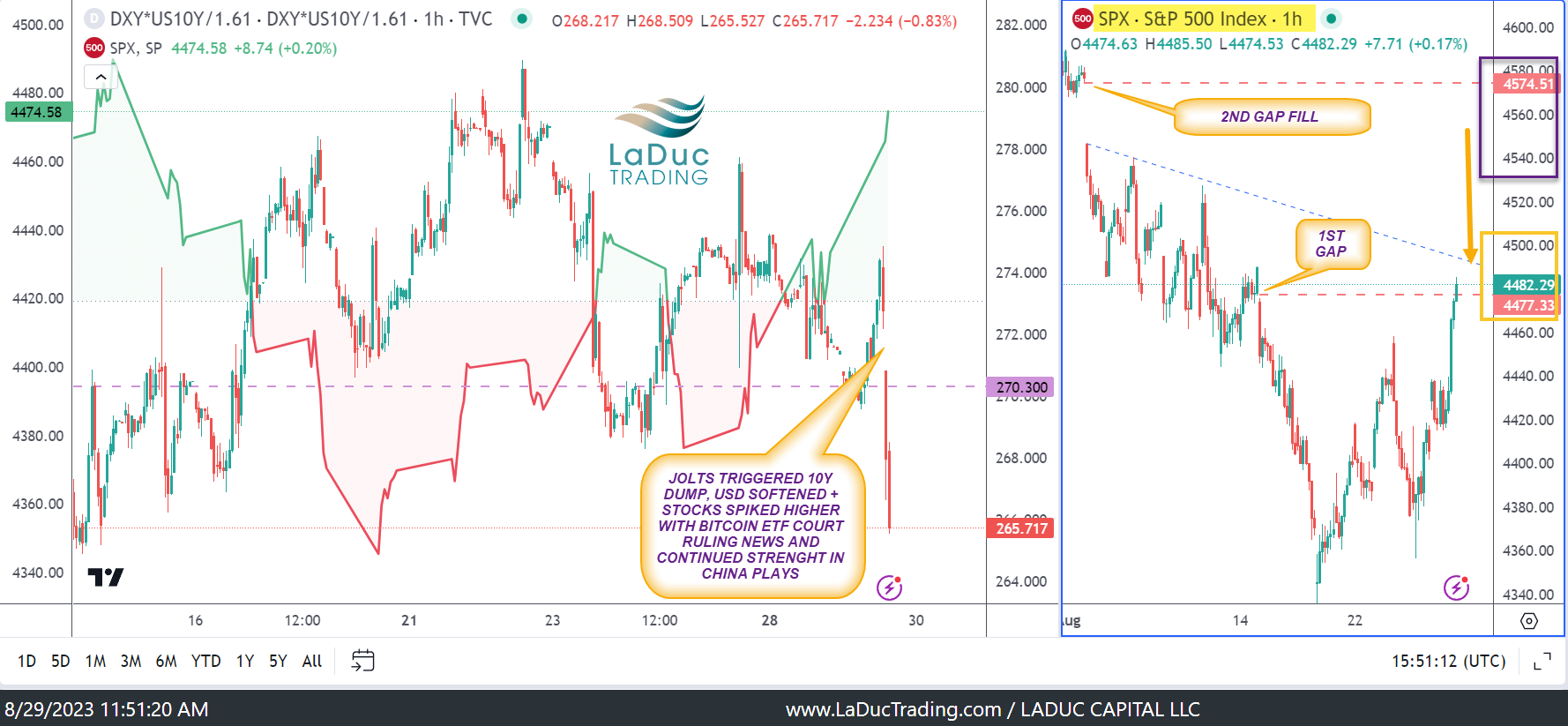 Market spiked higher when 10Y was dumped with USDJPY (which equates to risk on) when JOLTS data showed a strong weakening on open jobs.