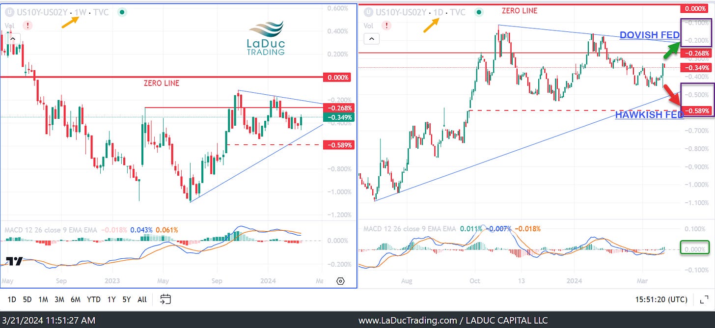 I think the 2Y10Y yield curve sums up the dilemma Fed members are facing, and how it won't likely resolve until after their next Fed meeting in May. And until they resolve that internal conflict - not likely until summer - I just don't see a lot of reason to expect another gold spike like we got with FOMC day - at least until the next meeting May 1st - or unless triggered by geopolitical events.