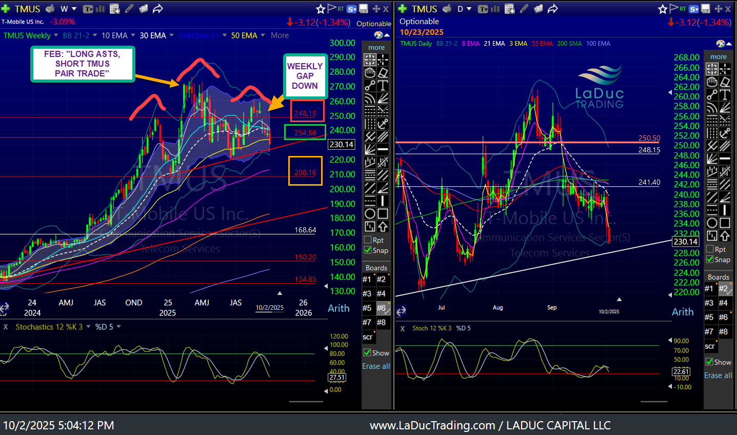 In fact, I’m really curious… TMUS is still looking like a big short in progress with a giant Monthly/Weekly Head & Shoulder’s trend reversal pattern.