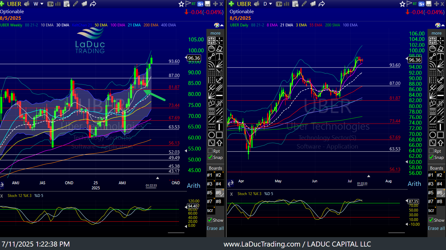 Trading all-time-highs is a solid strategy for those who prefer ‘blue skies’. That’s the ultimate ‘trend-trading’. Case in point: UBER. A great example of my May & June rec’d long if 81.87 holds, it will become an “if 80 then 100” stock.