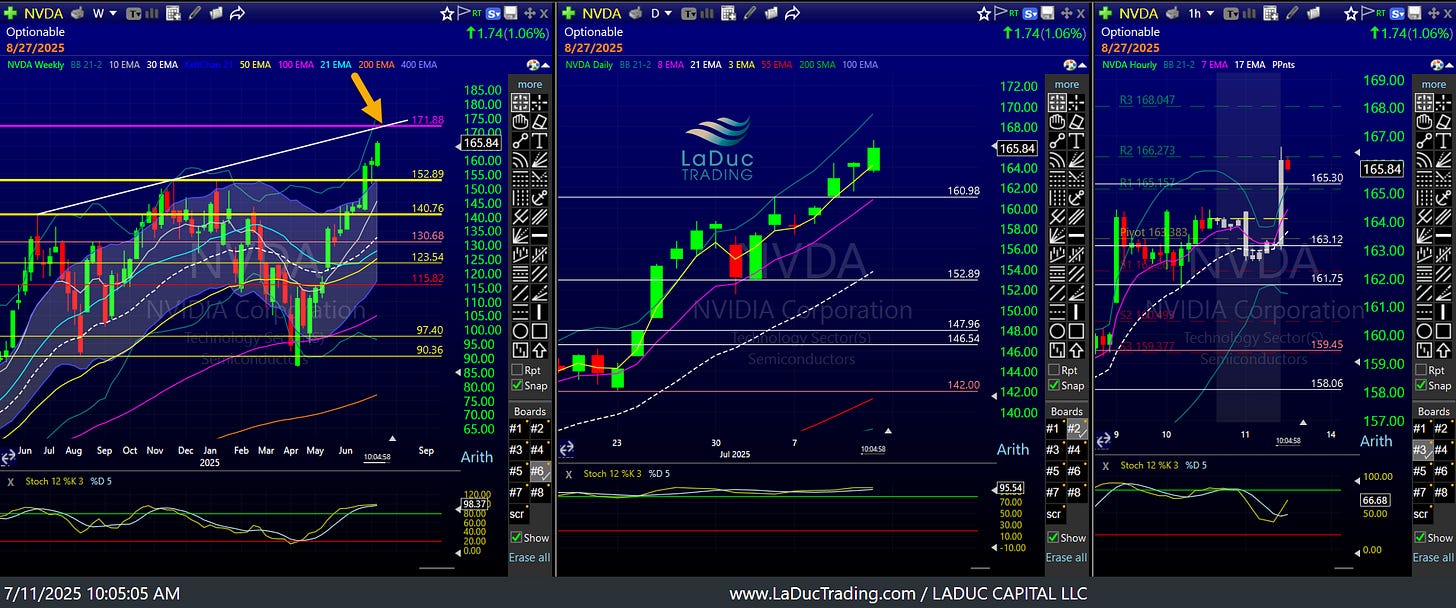 Tues: if NVDA stays below 159 it can drop to 150. If it gets/stays above 161 it can form a weekly doji sandwich and run to 172.