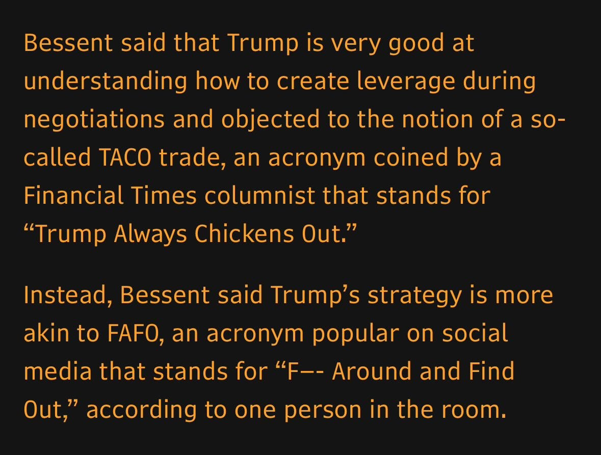 Futures fell -.5% last night as market starts to wonder... is TACO man coming back? Or as Bessent threatened: it's more like FAFO?