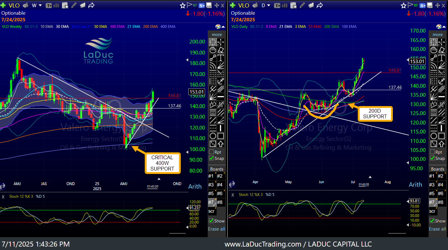 I can’t emphasize enough how important the 400W EMA support level is for any viable company. It is a terrific place to sell puts and/or to accumulate a position if you do not believe it is going away. Case in point: VLO - bouncing off 100 and since hitting 155! Ditto with MPC & PBF. The refiners had a fundamental tailwind as well with Crack spread differential.