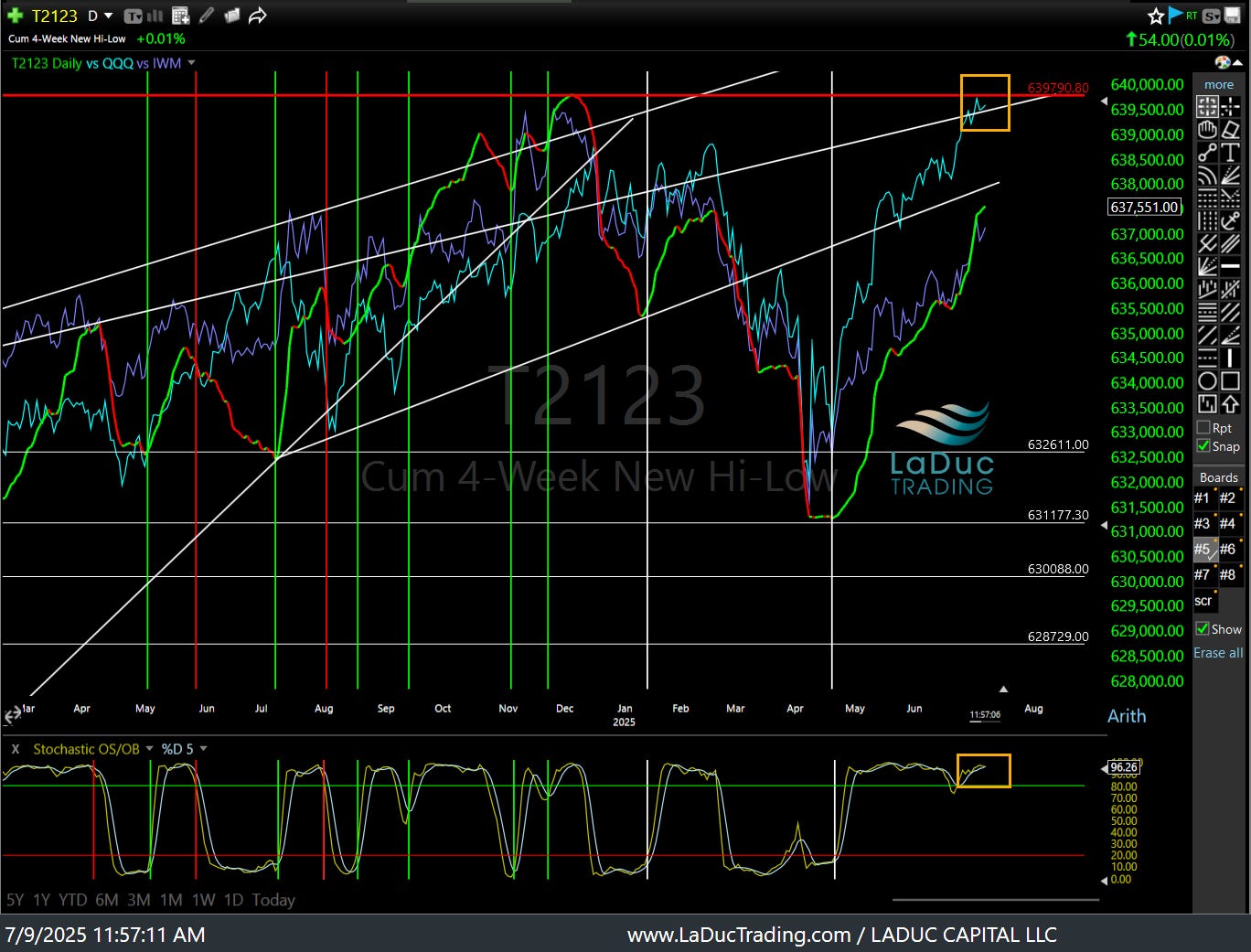 In the intermediate term, all the key intermarket tells I show daily are still bid on a daily/weekly timeframe. Read: overbought can stay overbought.