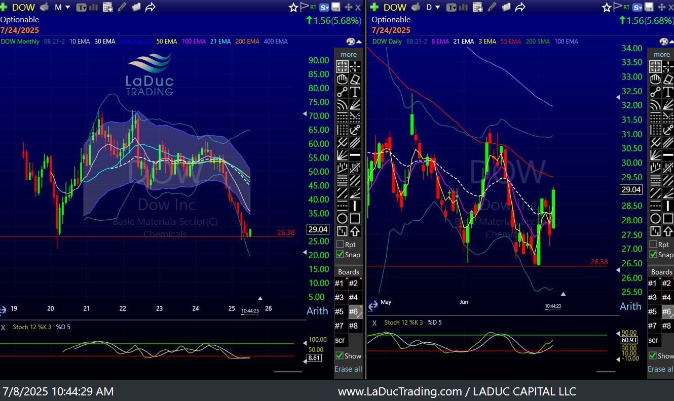Some stocks are just very oversold, making for a good LRE (low-risk-entry) for the very patient investor. DOW must stay > 26.38 for example...