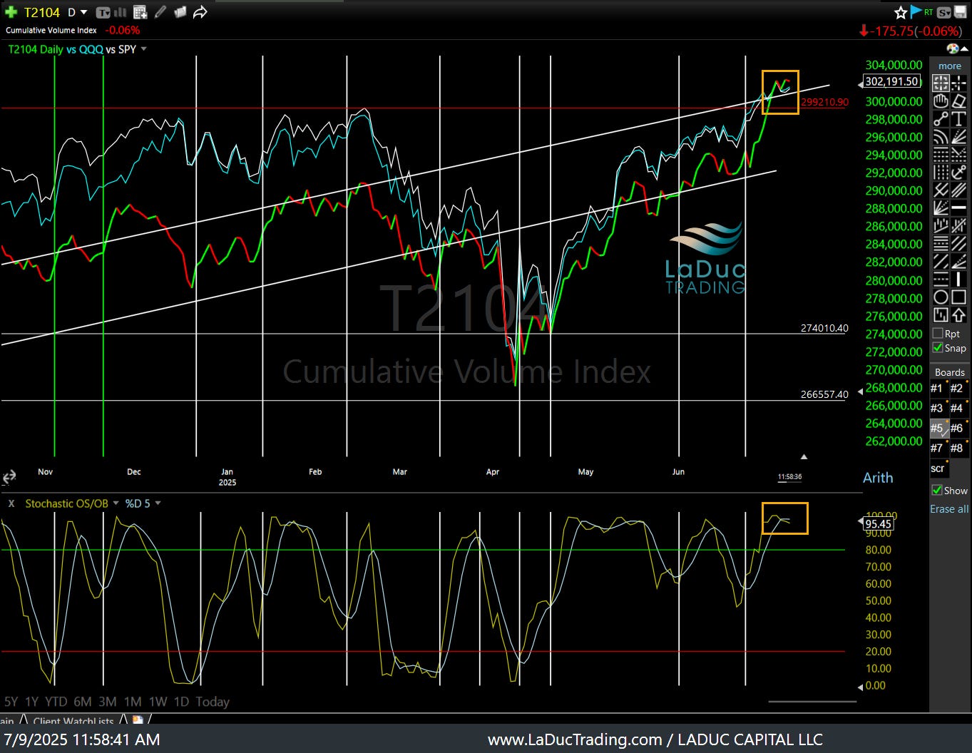 My point: yes, we are extended, and after NVDA tags 172 area, take care. But I don't see the strong selling under the surface needed to get tactically/heavily short the market, yet.
